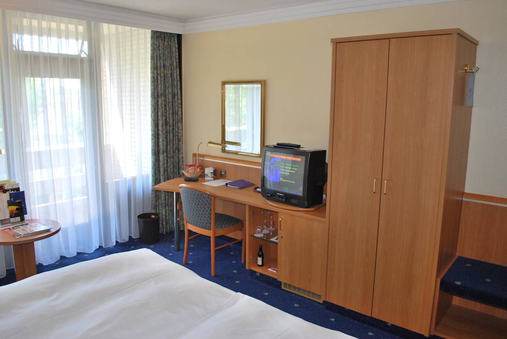 Schreibtisch mit Minibar und TV