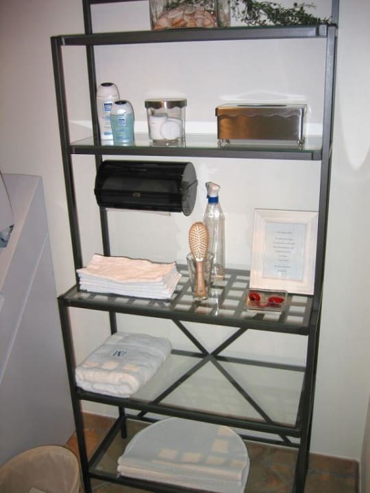 Regal mit Utensilien im Raum mit der Sonnenbank