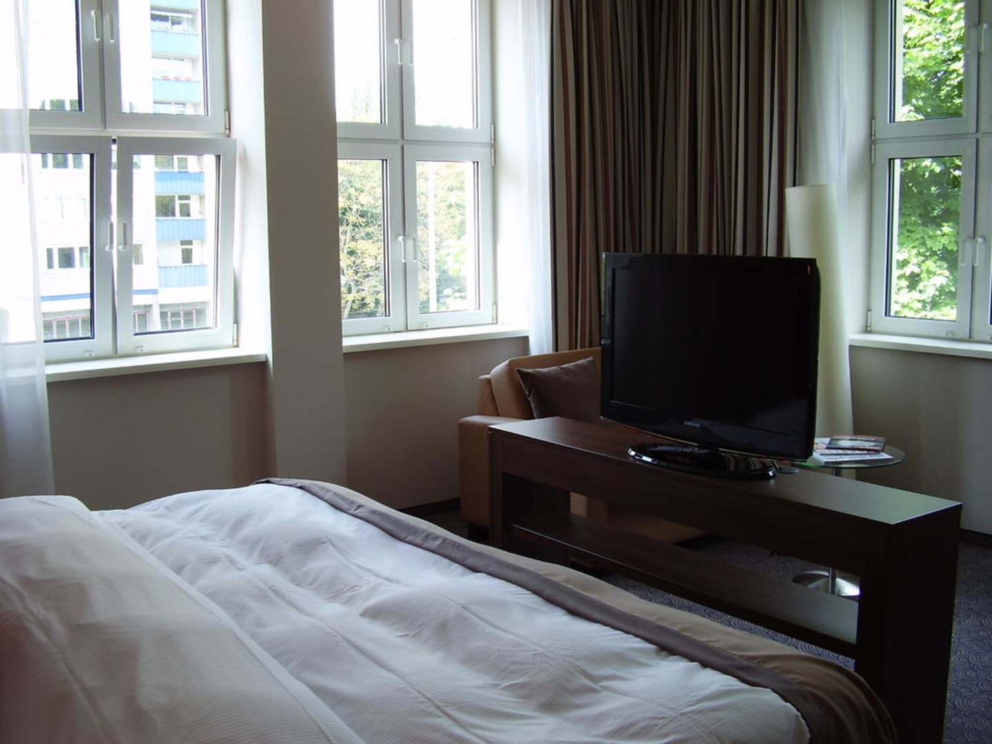 Bett, davor der große TV