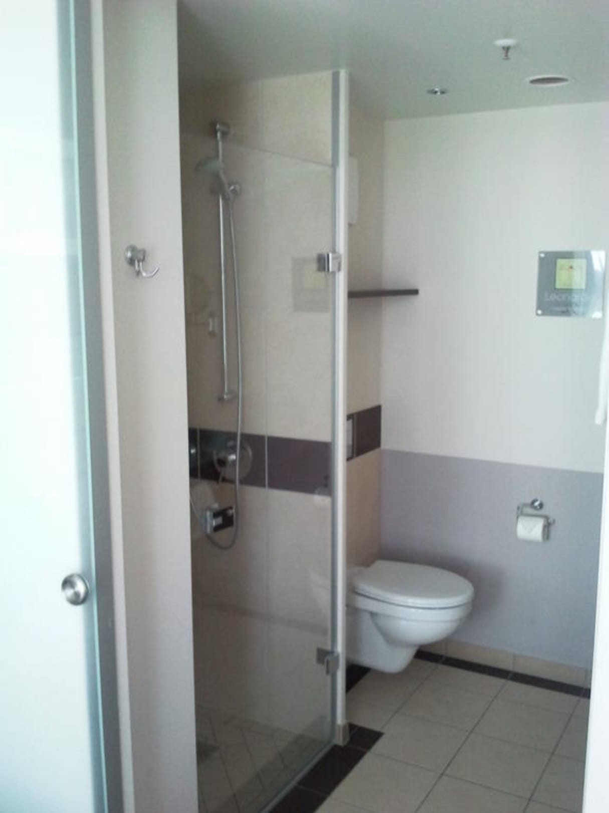 Große Dusche. Es gab sogar eine Wärmelampe an der Decke.