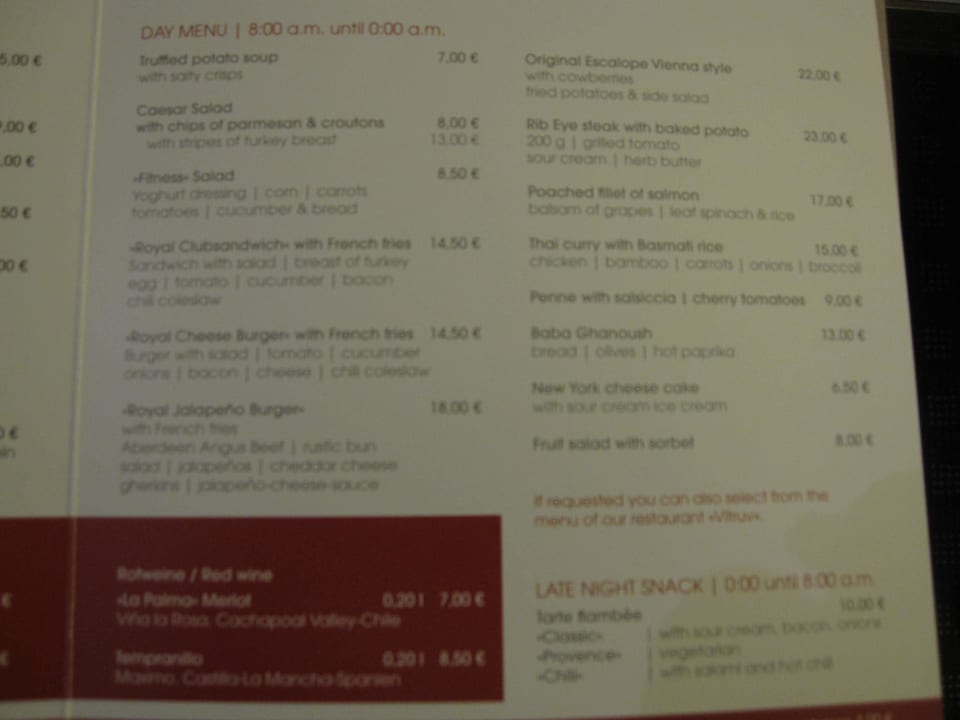 Roomservice-Preise (englisch)