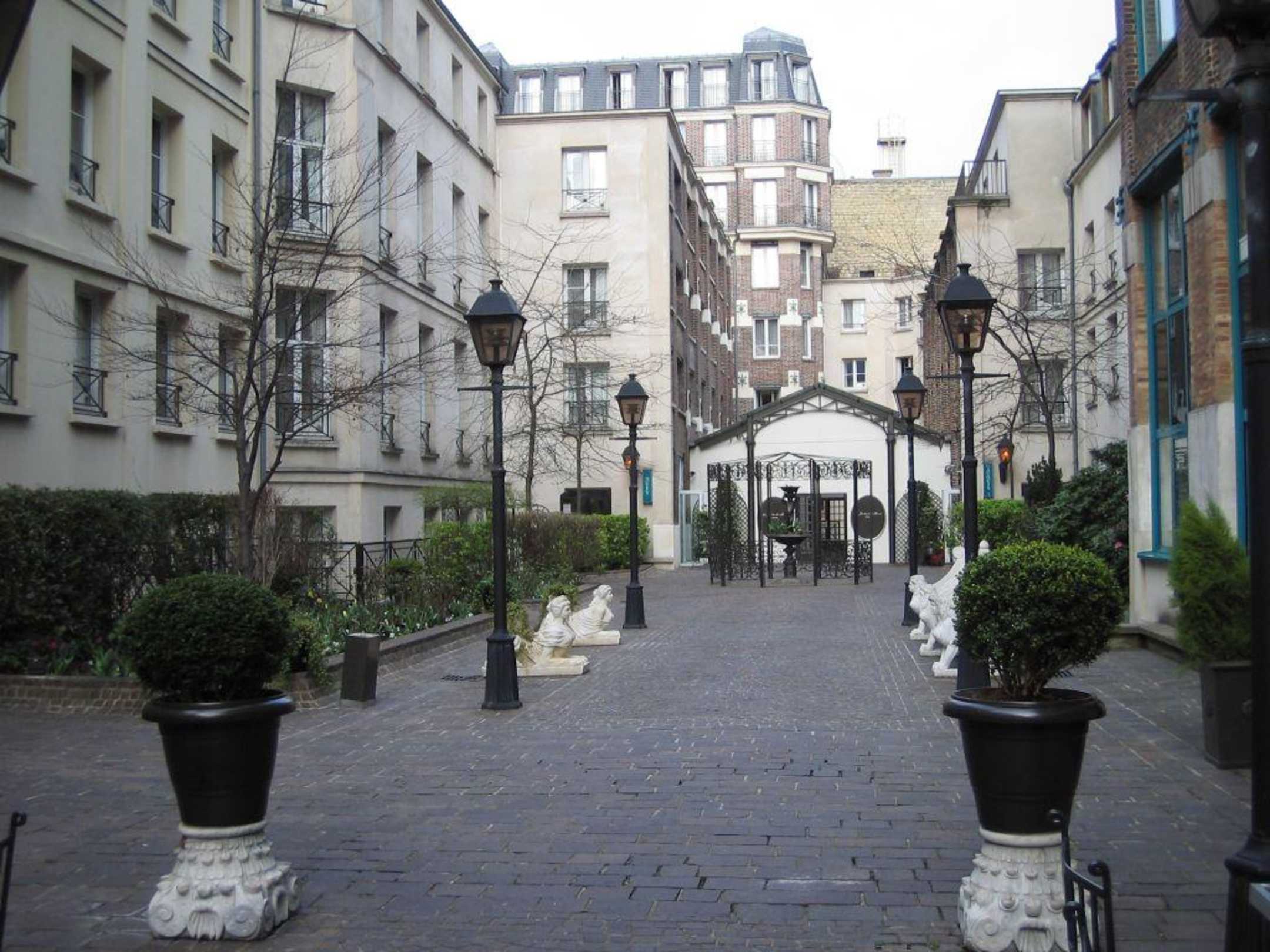 Innenhof des HotelsDas Bild zeigt den Innenhof des schönes Hotels im trendigen Marais-Viertel. Es ist nicht weit zum Place de la Bastille und zu einem der schönsten Plätze von Paris, der Place de Vosges. Das Marais verströmt oft den Reiz einer Kleinstadt, mitten in Paris - mein absoluter Tipp!