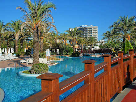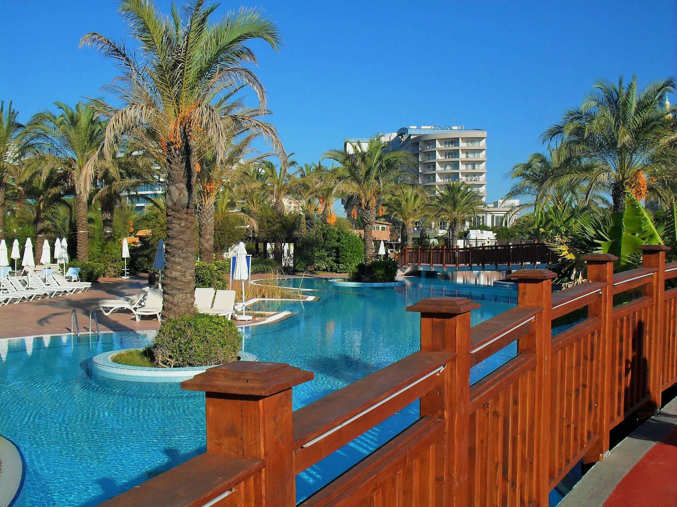 Blick vom Pool zum Hotel