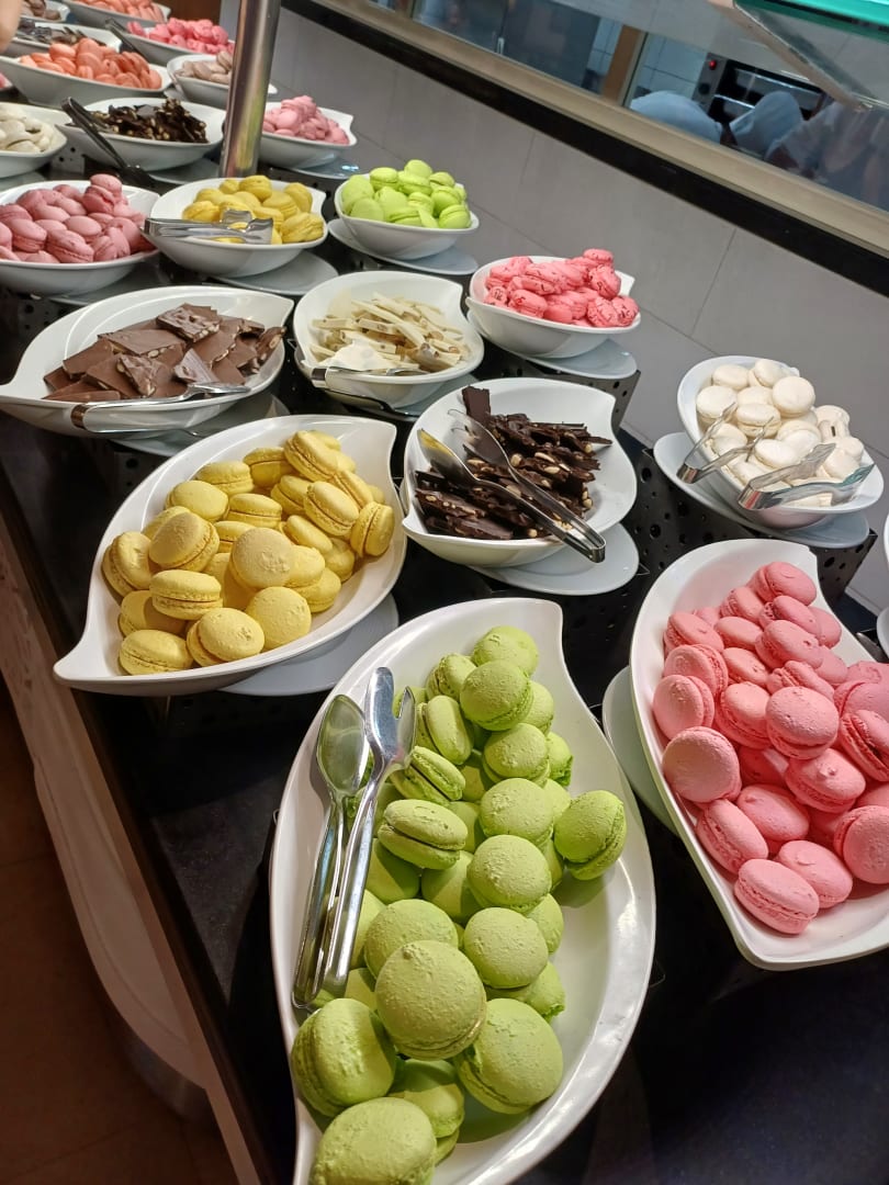 An einen Abend waren auf einer Anrichte nur Macarons in verschieden Geschmacksrichtungen serviert worden. Natürlich gab es noch verschieden Törtchen un Kuchen.
