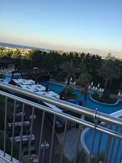 Blick von unserem Balkon auf den 16+ Silence Pool und die Anlage
