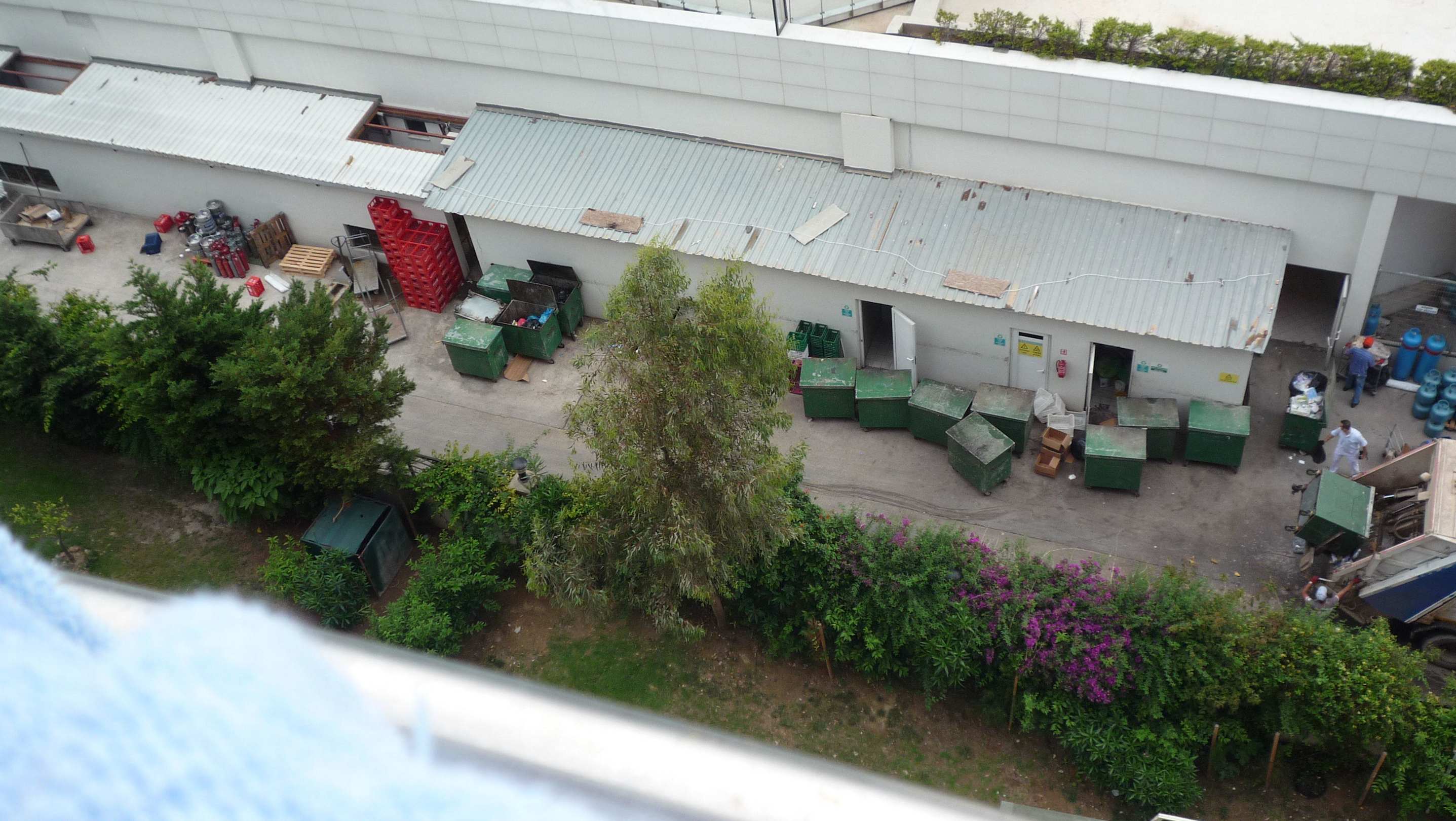 Blick vom Balkon auf Müllcontainer