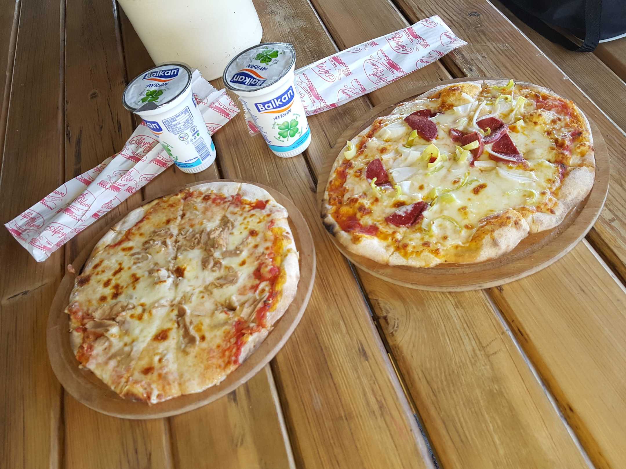 Im Pizzazelt gibt es sehr sehr gute Pizzas aus dem holzbefeuerten Backofen.