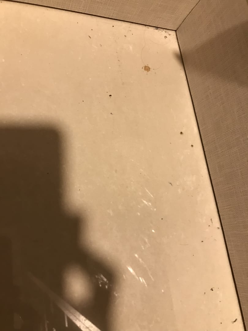 Dreckige, angeschlagene Fliesen.