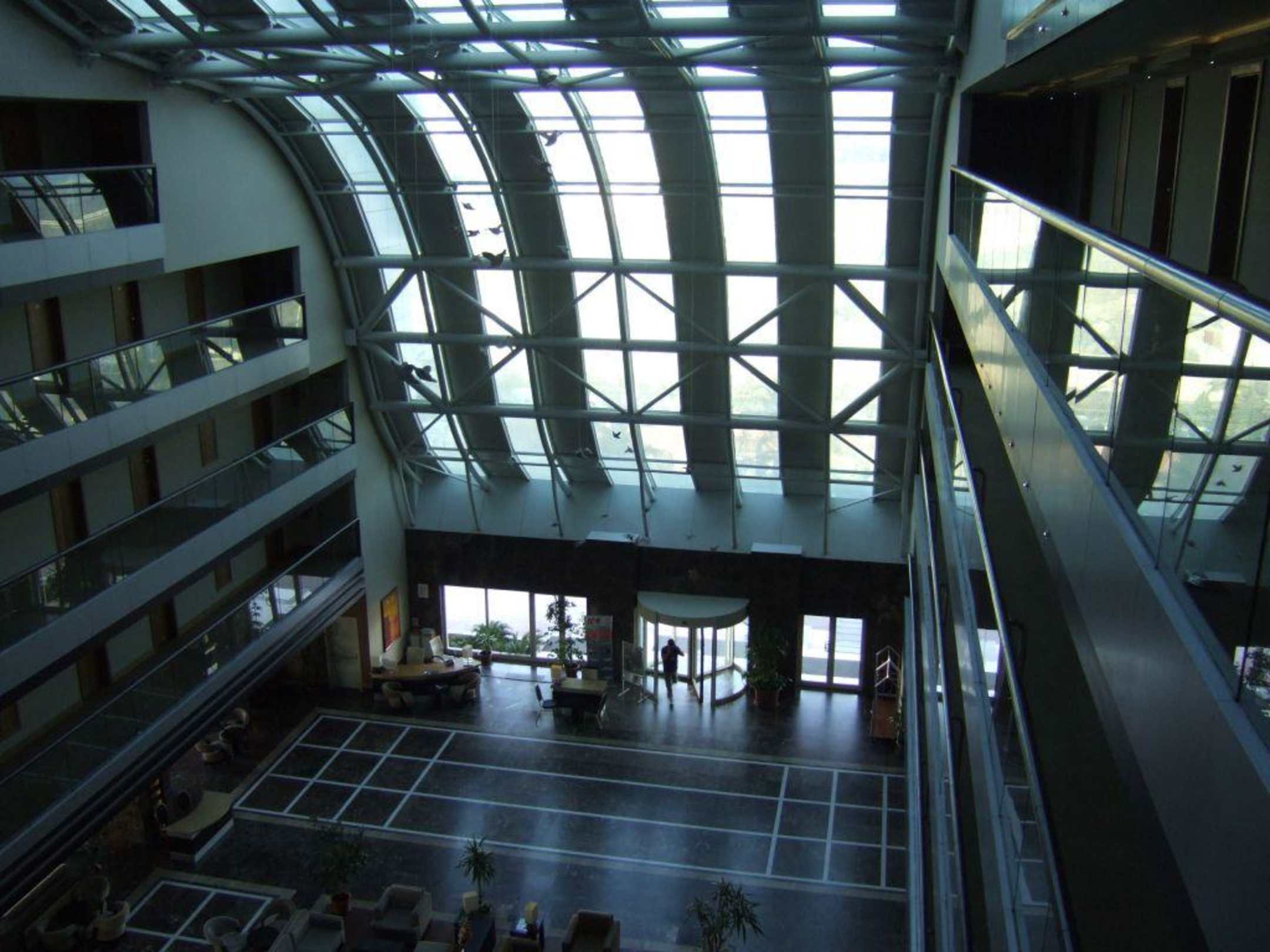Die Lobby mit dem geschwungenen Dach ist schön gebaut.