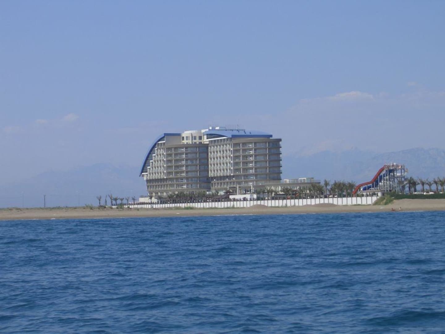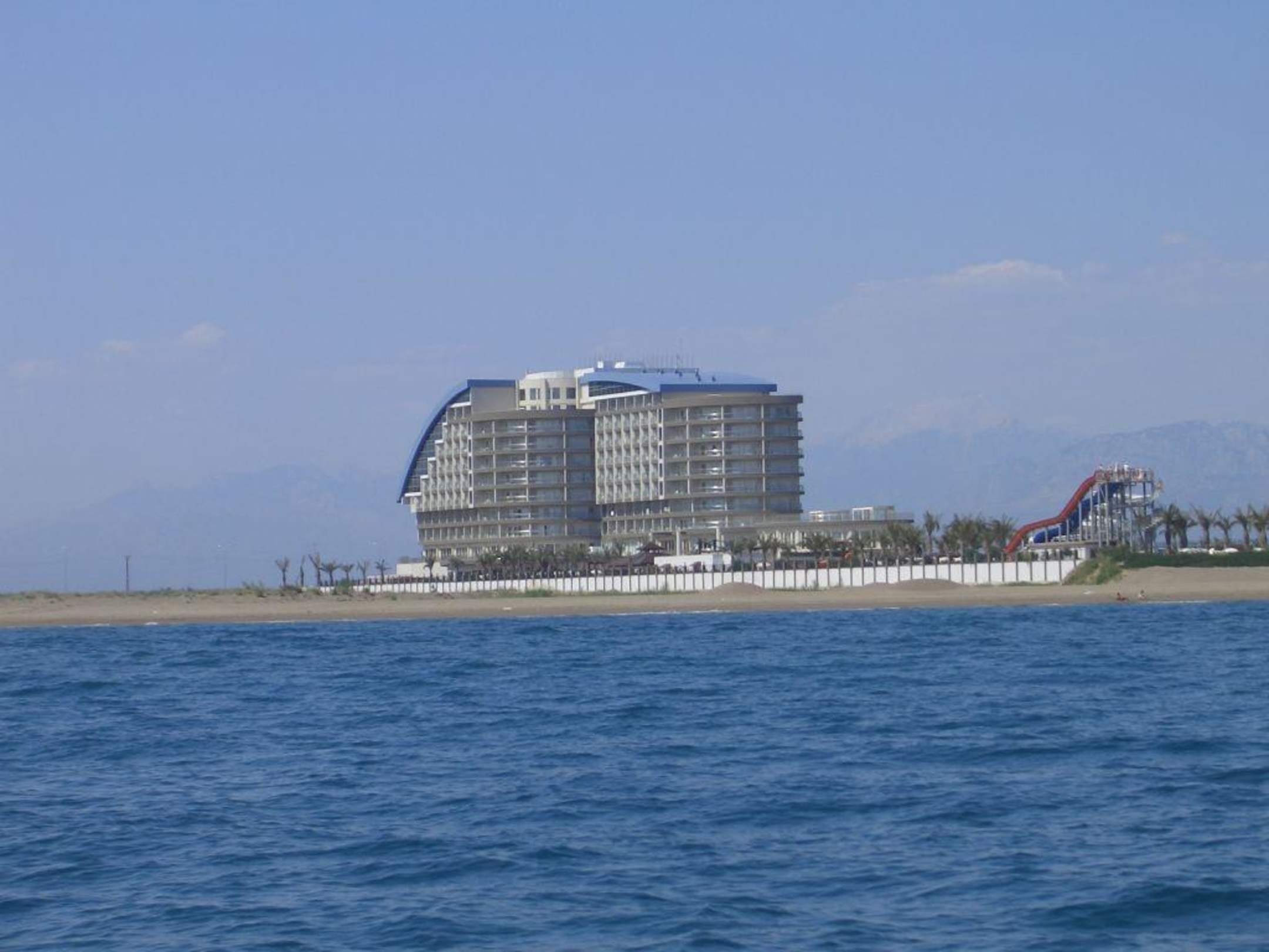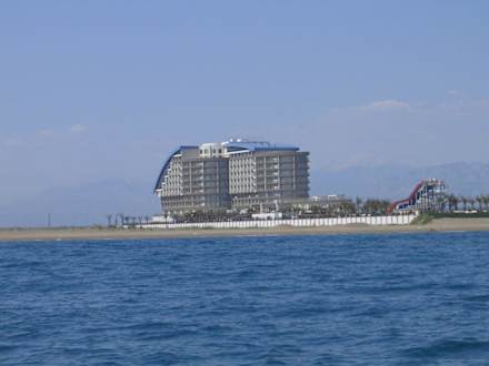 Das Hotel Lara Beach vom Meer aus!