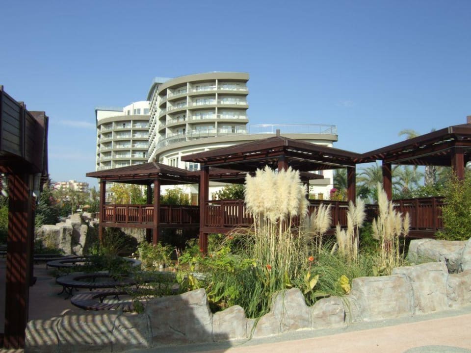 Ansicht vom Garten aus zum Hotel Lara Beach