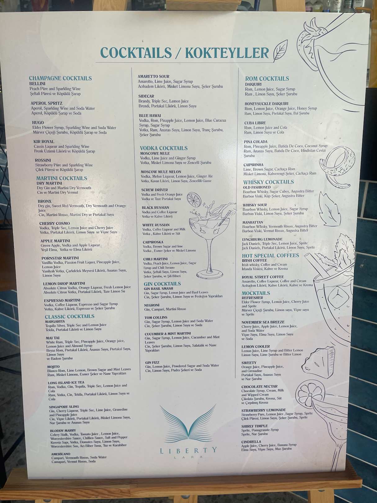 Cocktailkarte gültig an allen Bars