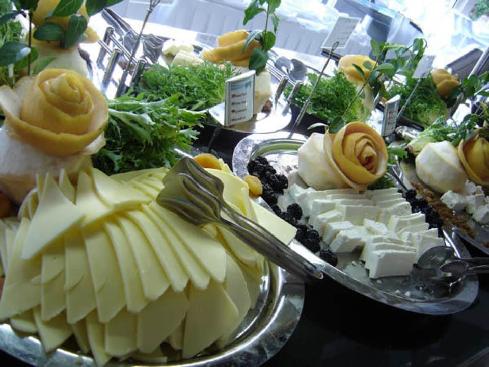 ...eine der zahlreichen Käseplatten beim Frühstücksbuffet
