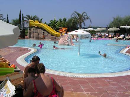 Blick auf den Kinderpool mit Mini-Rutschen