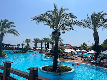 Hauptpool mit Rutschen im Hintergrund