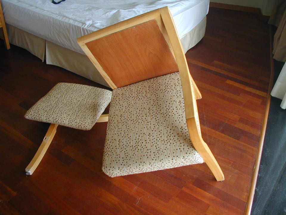 Holzsessel im 5 Sterne ZimmerDer Sessel brach am schon am 3. Tag unter mir zusammen. Entschuldigt hat sich für diesen Zwischenfall niemand.