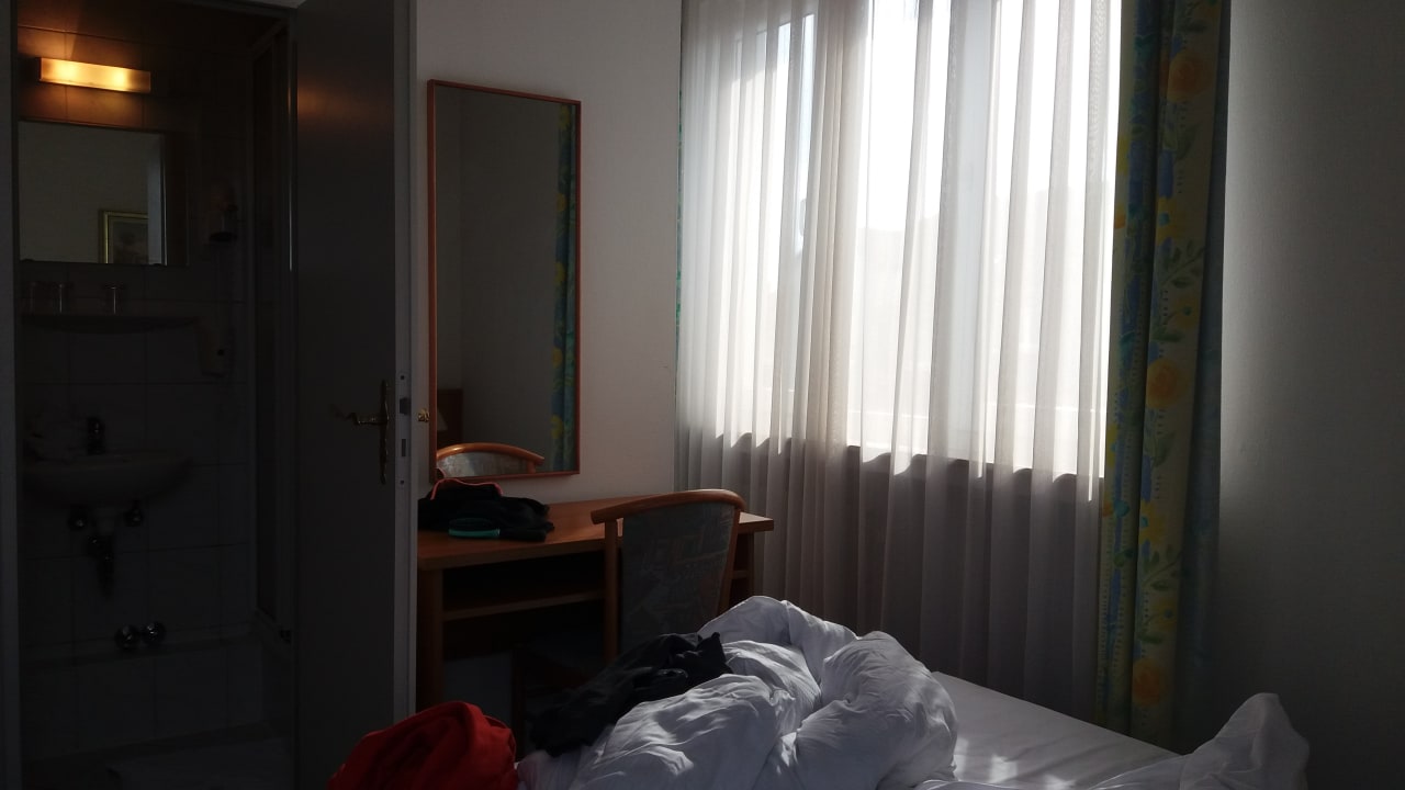 Das Zimmer war nicht sehr gut geschnitten. Rechts vom Schreibtisch war eine 1m lange und ca. 30 cm breite Lücke zwischen Wand und Fenster. Da hätte man lieber das Bad größer gemacht.