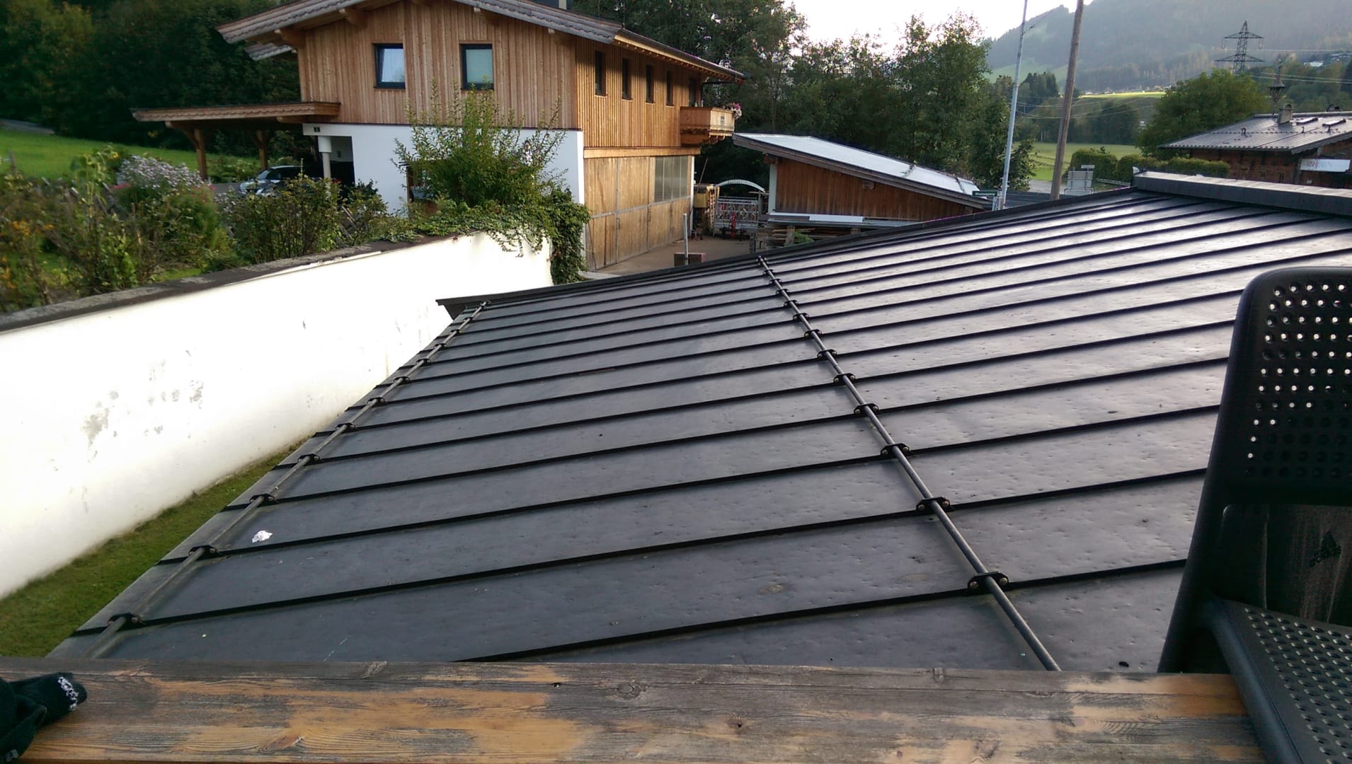 Ausblick vom Deluxe Zimmer auf das schwer Hagelschaden betroffene Dach vom Restaurant