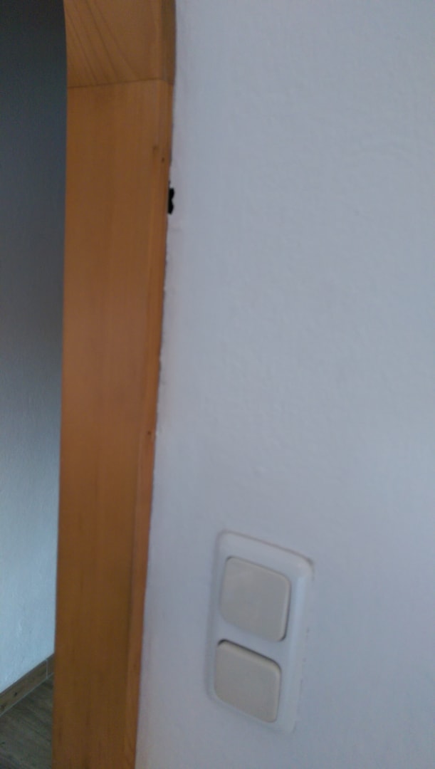 Löcher im Durchgang, vergilbte, schmutzige Lichtschalter