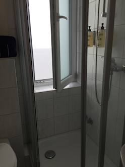 Bad: Dusche mit integriertem Fenster
