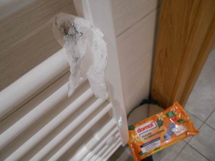 Putzarbeiten bei Bezug unseres Zimmers 207.