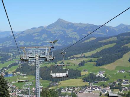 Ausblick auf das Lifthotel links unten und das Kitzbüheler Horn vom Gaisberglift.