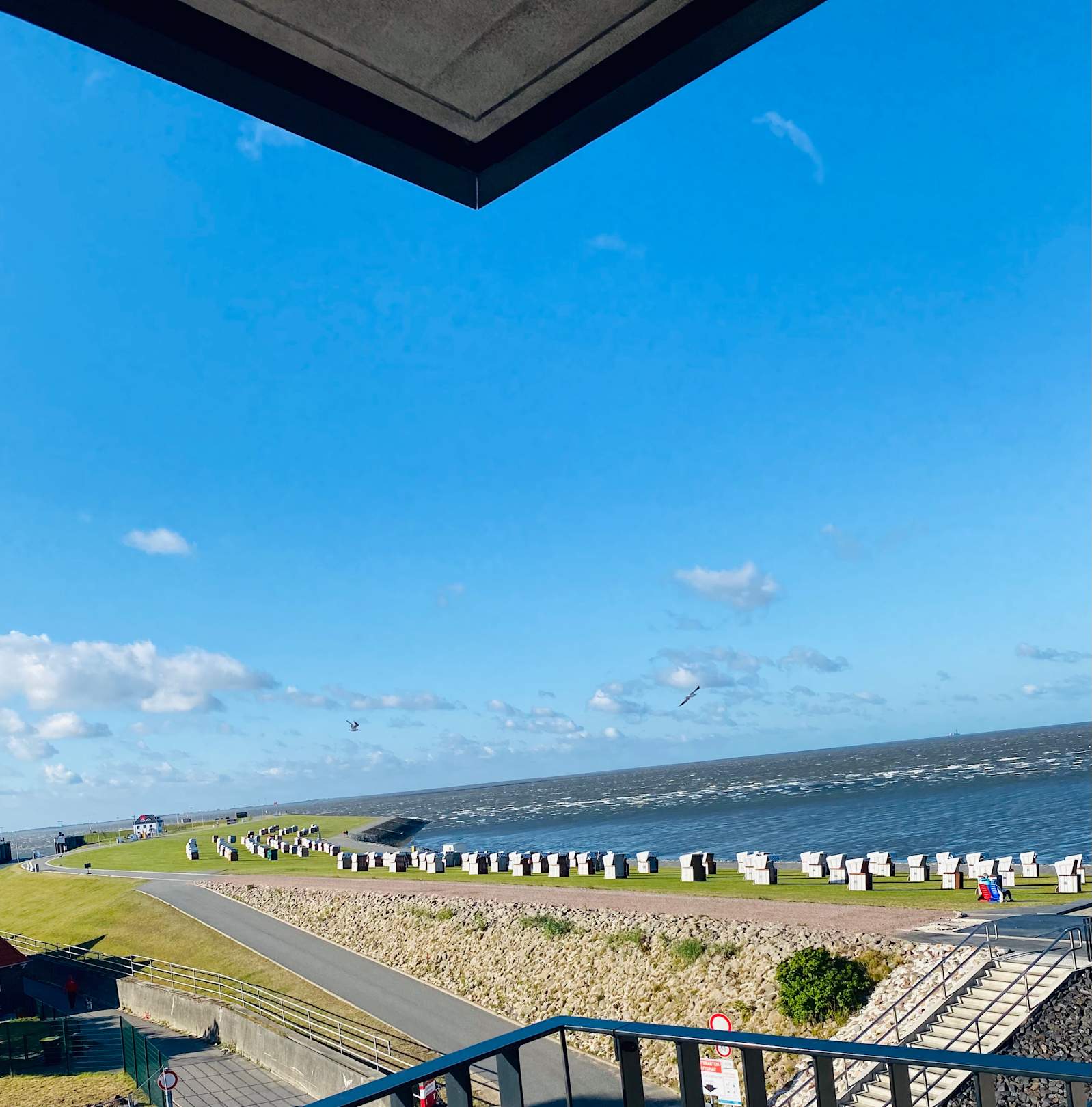 Blick vom Balkon auf den Hauptstrand