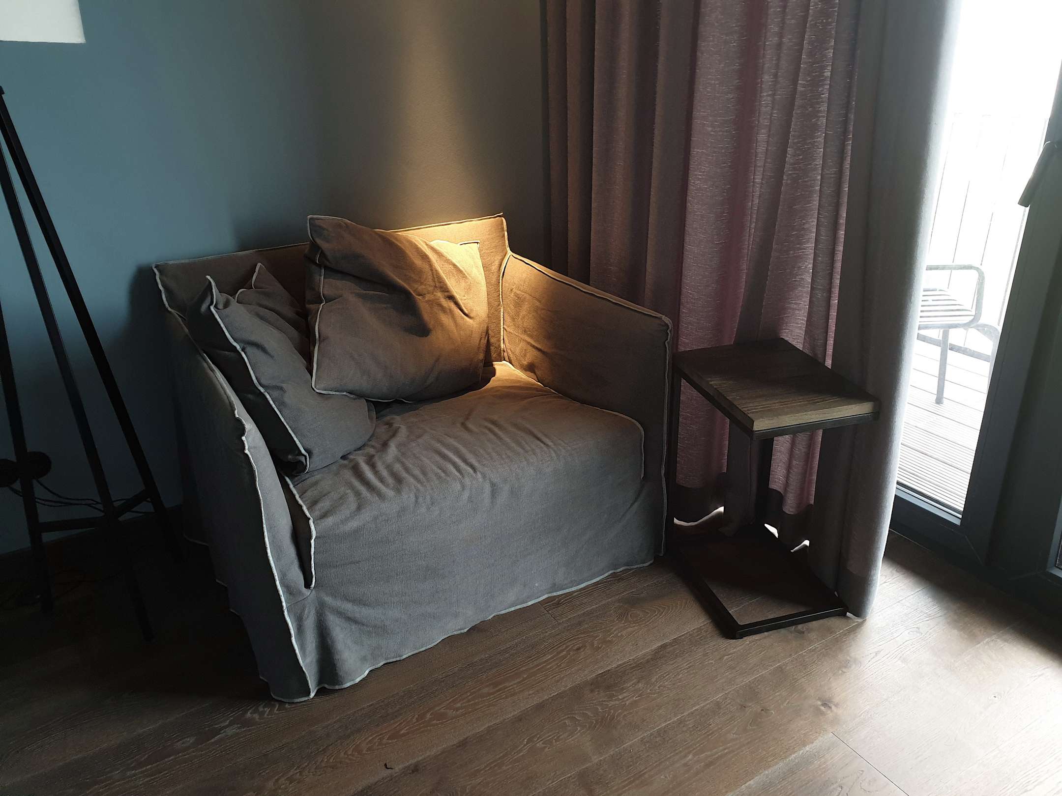 "Sitzecke" ... unbequem, mit Tischchen