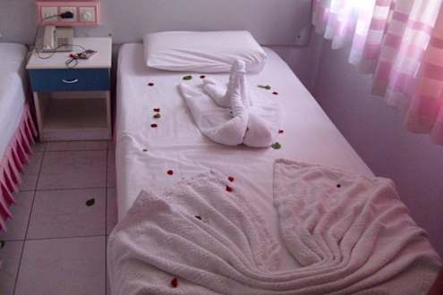 Unsere Betten waren in der Hauptsaison zäglich so zurechtgemacht.