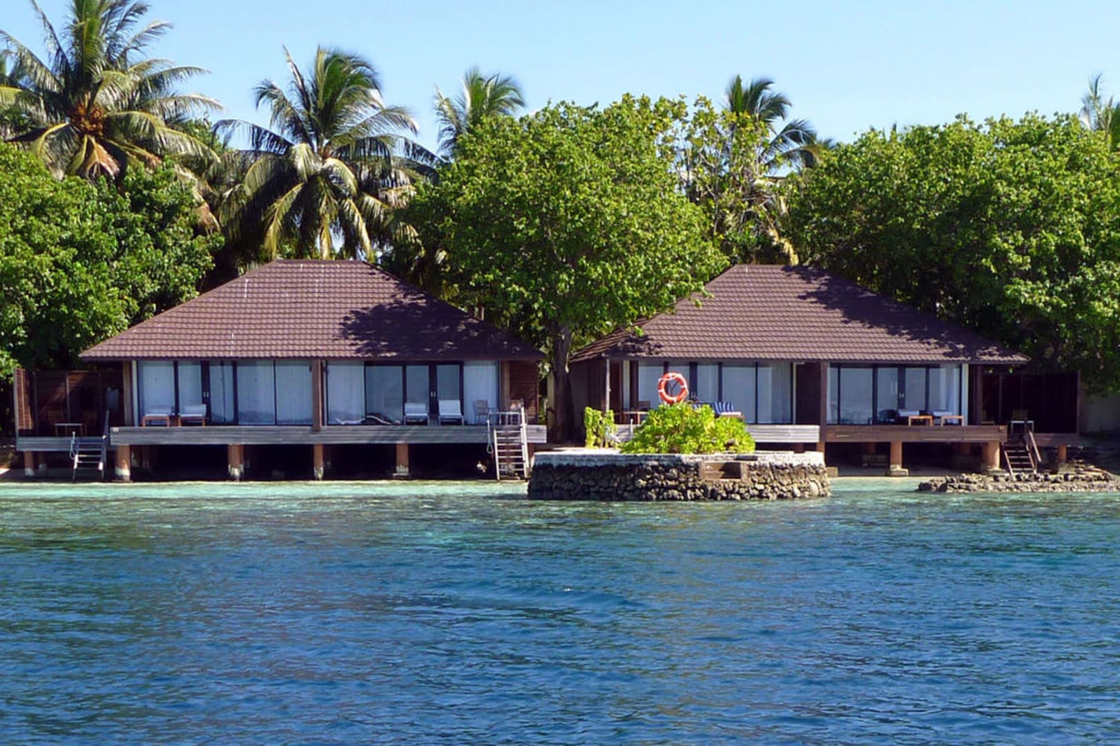 и здесь каждый домик - это 2 номера, непляжная сторона острова.