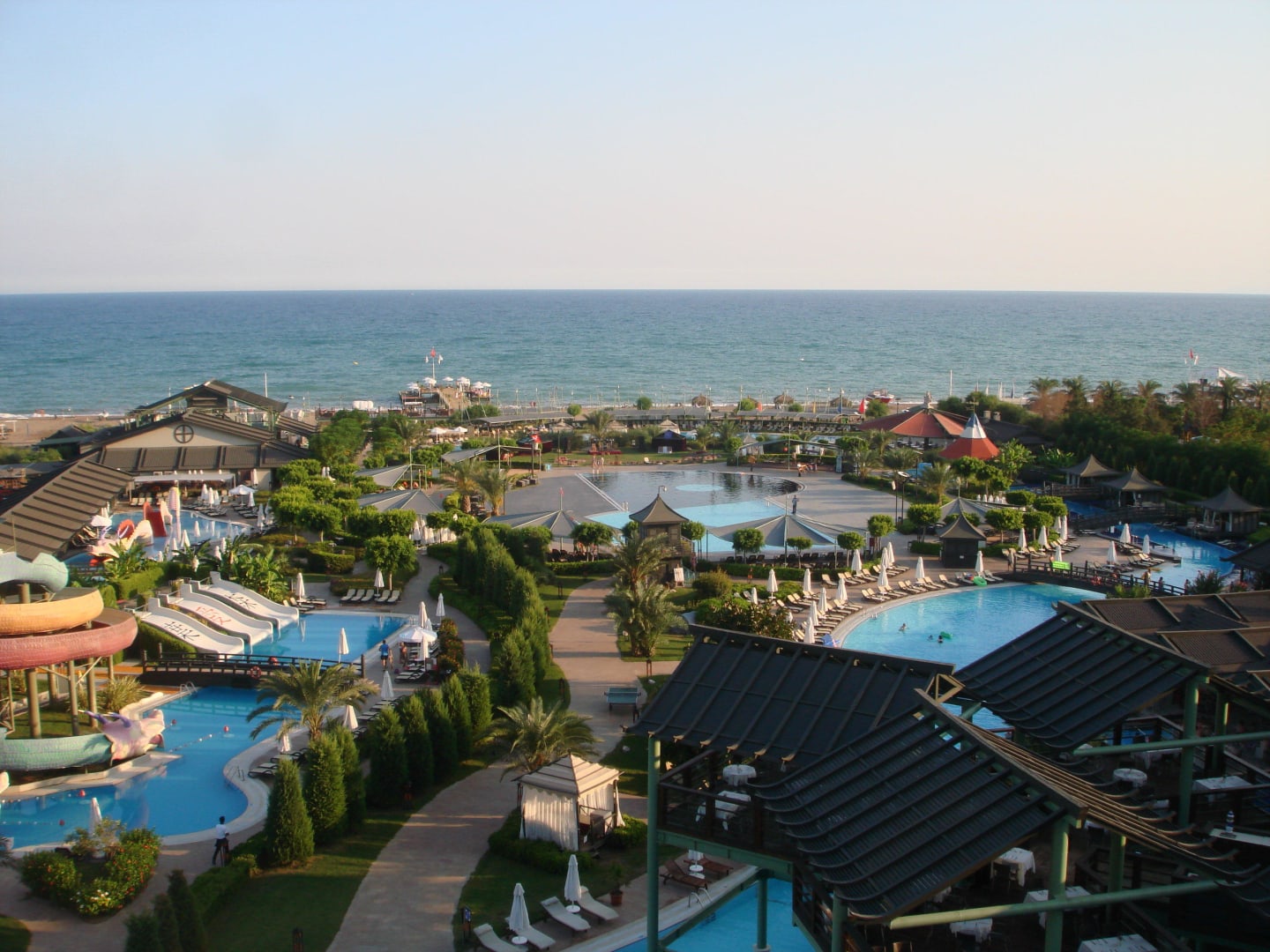 prachtig uitzicht op de volledige zee en alle zwembaden vanuit de familiesuite