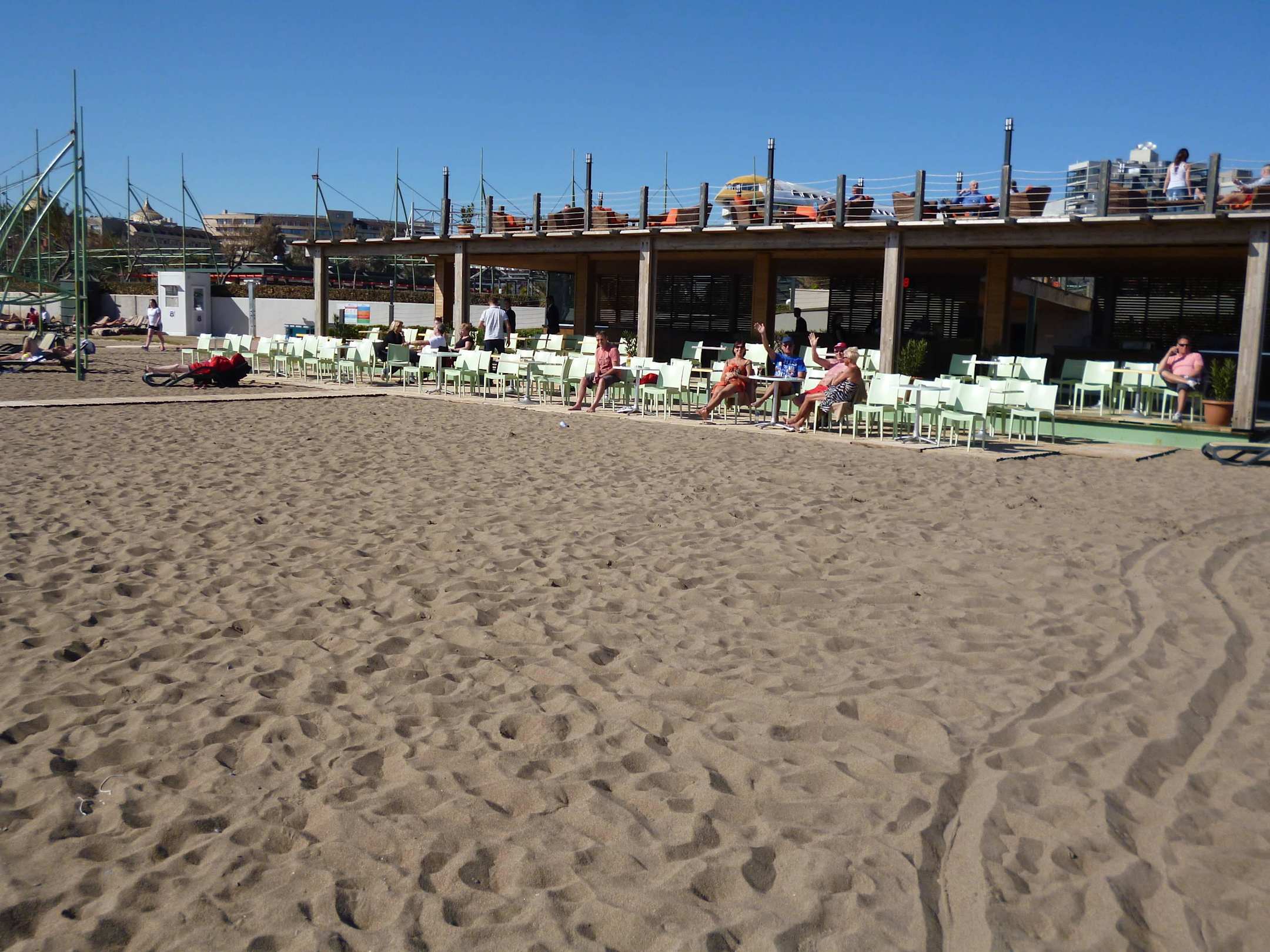 Breiter Strand mit Strandbar
