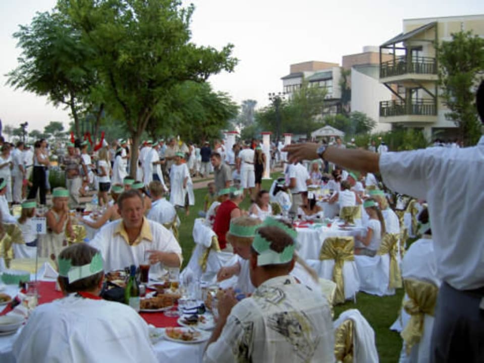 Römisches Fest (als Abendessen)Ein besonderes Erlebnis war das Abendessen im römischen Stil. Schon zwei Tage vorher konnte man die Aufbauaktivitäten beobachten. Außer dem gewohnten Zeugs gab es noch reichlich Fisch, Krebse und ein zusätzliches Angebot an Fleischteilen- es war einfach zu viel, alles auszuprobieren. Aber ein paar Russen haben es geschafft (naja, das Holen, ob sie das wirklich gegessen haben ???