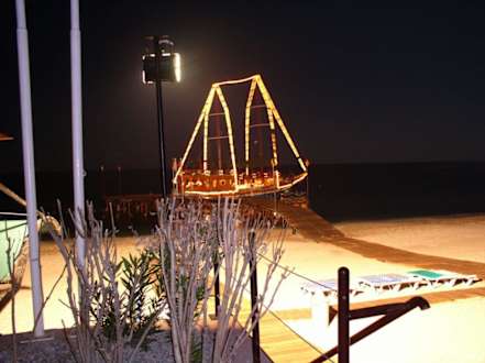 Schiff am Hotelstrand