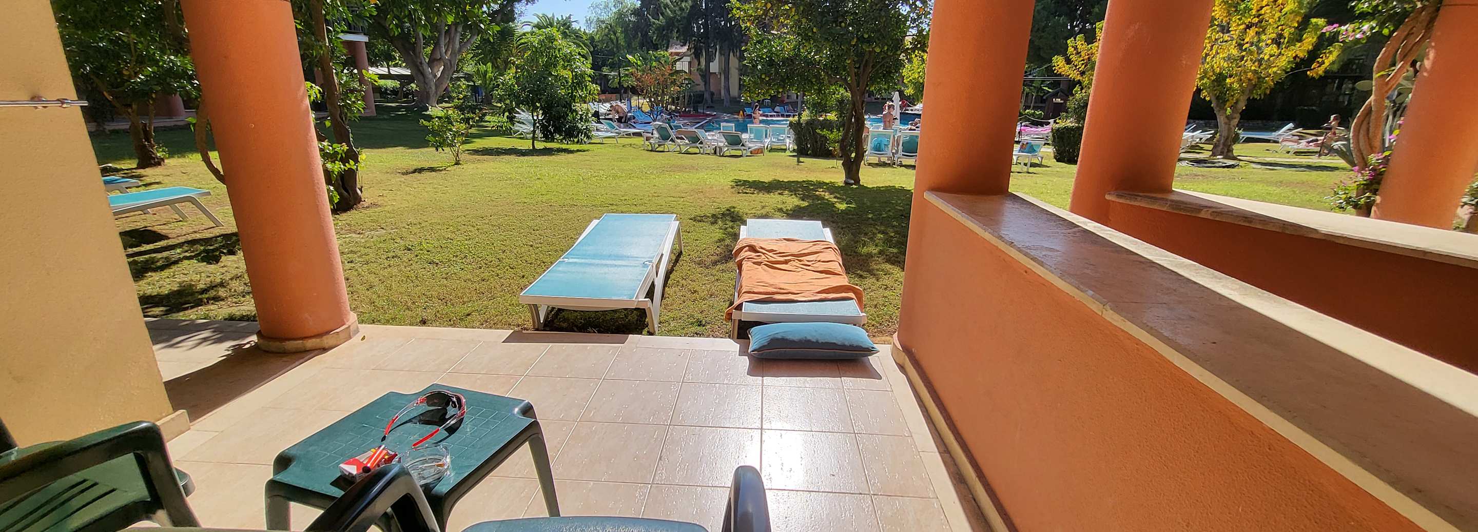Terasse vom Zimmer heraus.