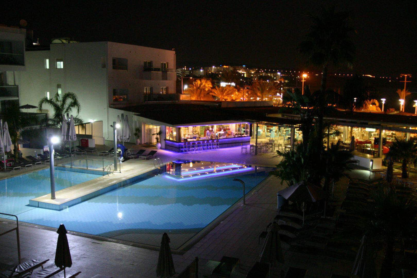 Pool und Restaurant bei Nacht