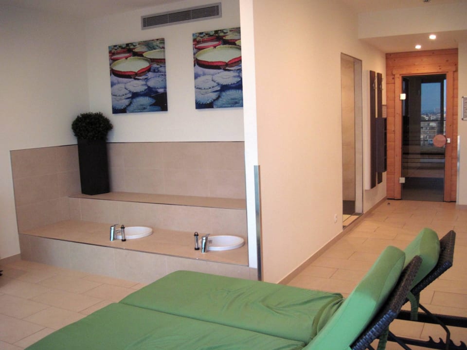 Blick vom Ruhebereich in Richtung Sauna