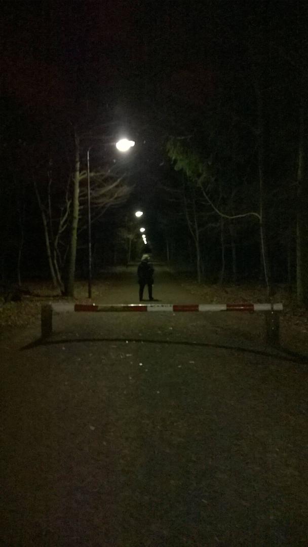 Beleuchteter Waldweg zum Hotel