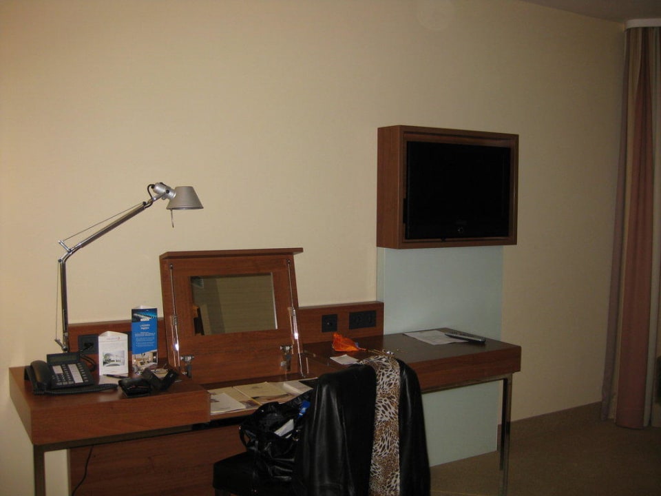 Schreibtisch und Flachbildfernsehgerät