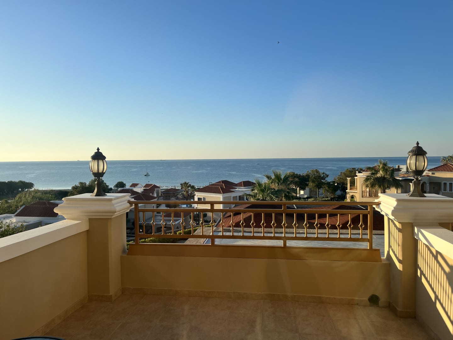 Ausblick von der Familiensuite mit Meerblick im Haupthaus.