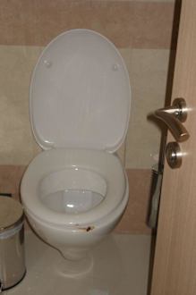 Das will sicher niemand sehen!Ich habe daher lange überlegt, ob ich dieses Bild einstellen soll. Es war tatsächlich während meines Aufenthaltes die einzige kotverschmierte Toilette, die ich in der Nähe der Spezialitätenrestaurants zu sehen bekam. Allerdings wurden die öffentlichen Toilettenräume alle nur sehr selten gereinigt (ich habe dies während meines Aufenthaltes NIE gesehen) und waren daher meist nicht im tadellosen Zustand. Durch die teils weiten Wege bis zum Zimmer war man meist auf diese Waschräume angewiesen und entsprechend viele "Nutzer" gab es.