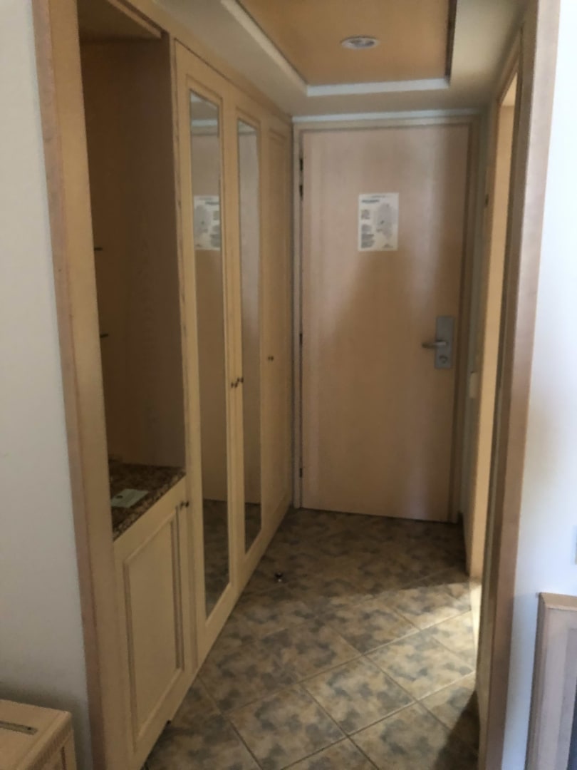 Flur mit Schrank, rechts Tür zum Bad