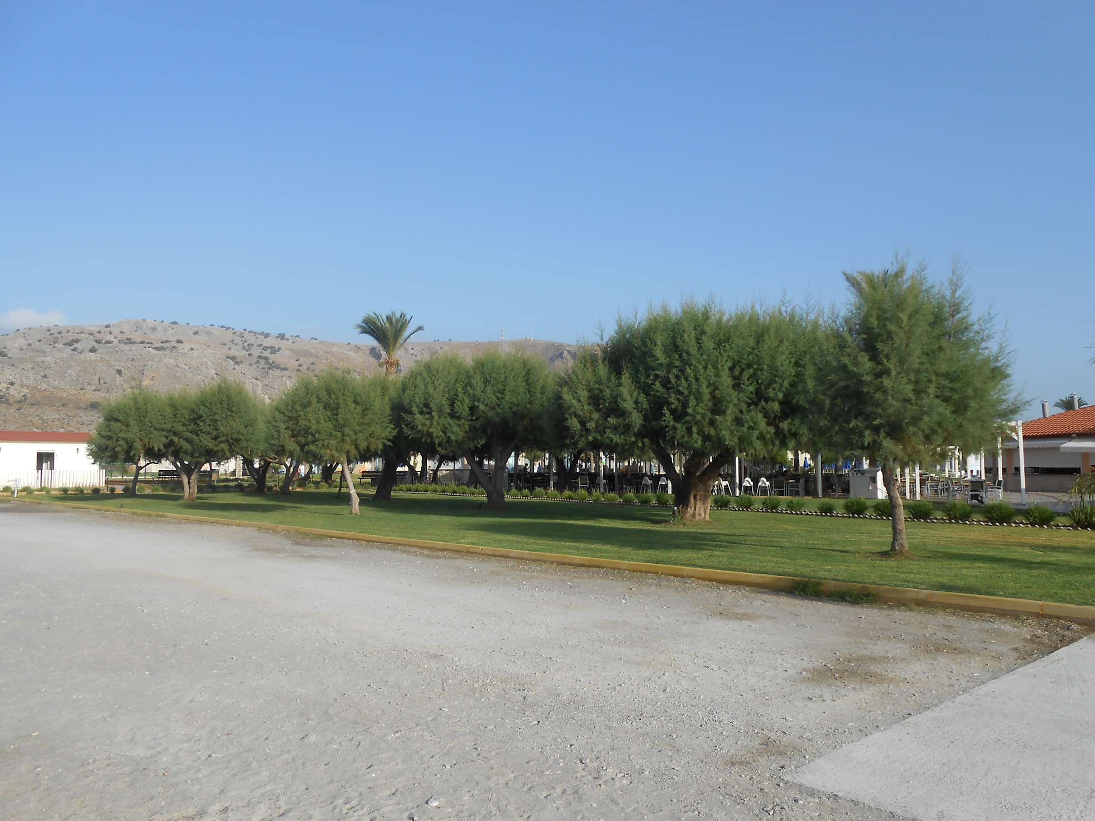 Blick vom Strand zu den Strandbars und Strandrestaurant