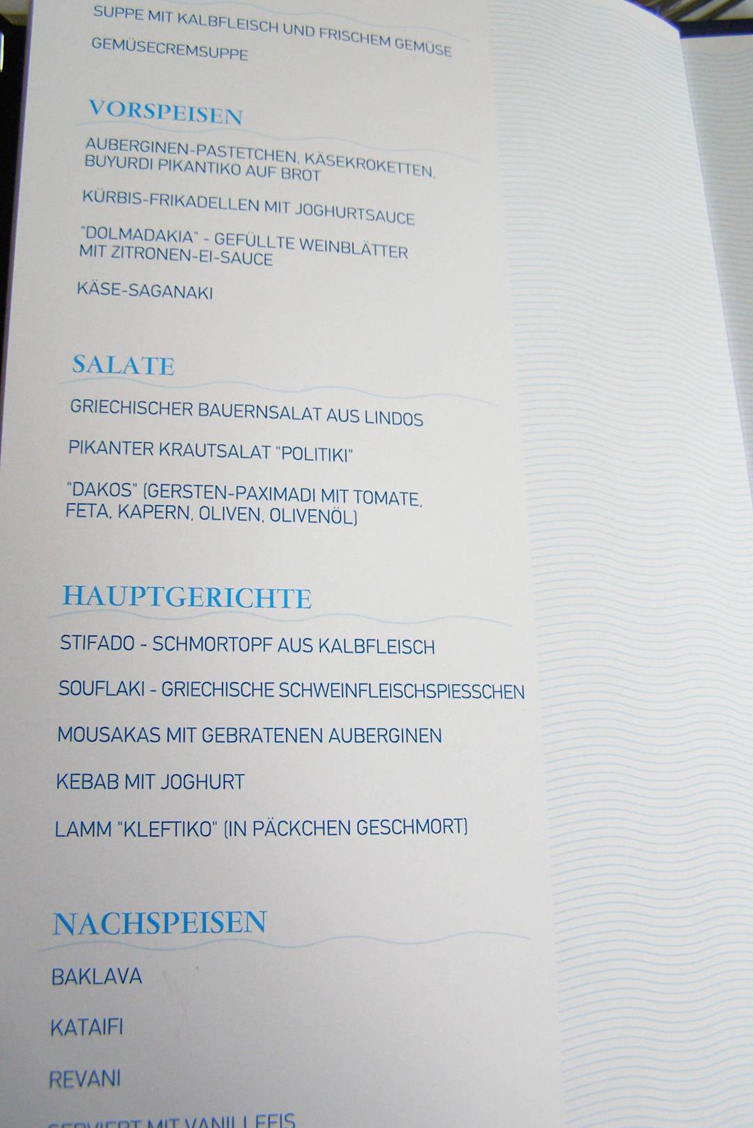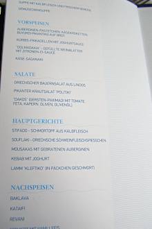 Die Speisekarte des griechischen Themenrestaurants