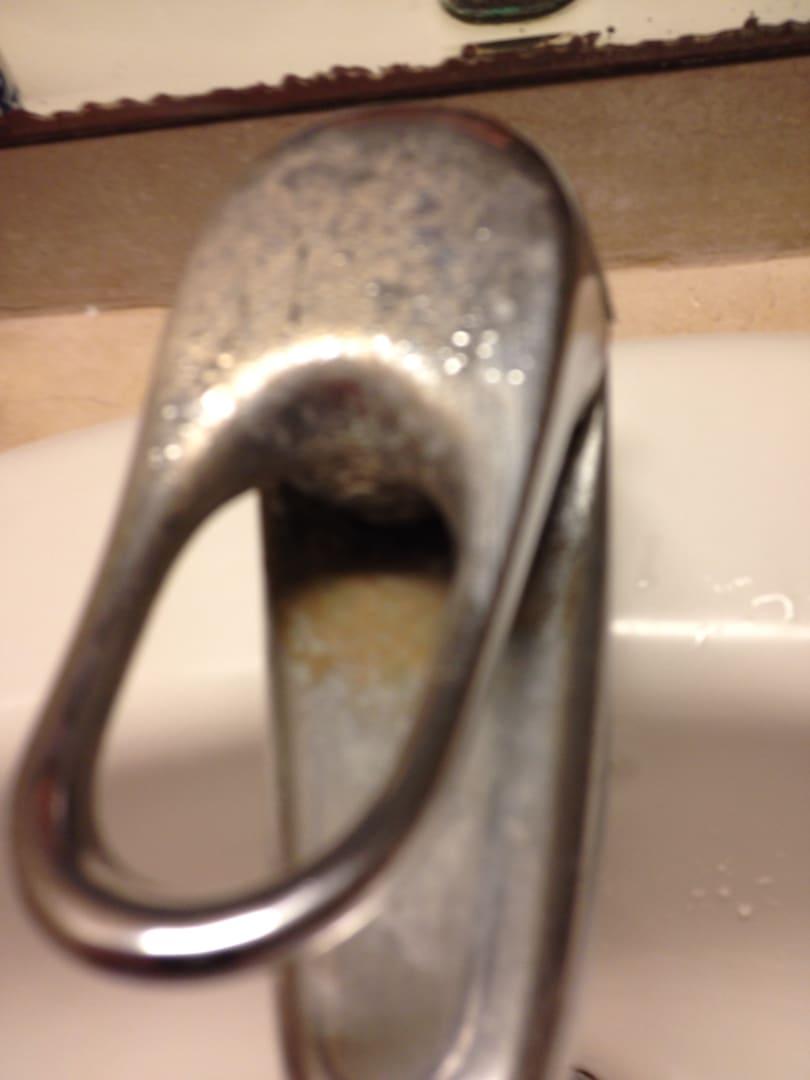Armatur am Waschbecken, mit abblätternder Legierung. Wackelte ausserdem wie ein Kuhschweif!