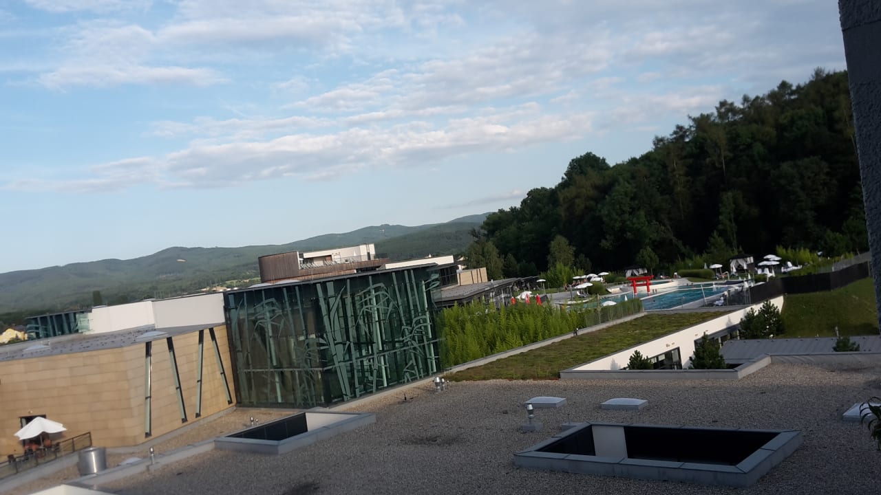 Blick vom Zimmer auf die öffentliche Therme