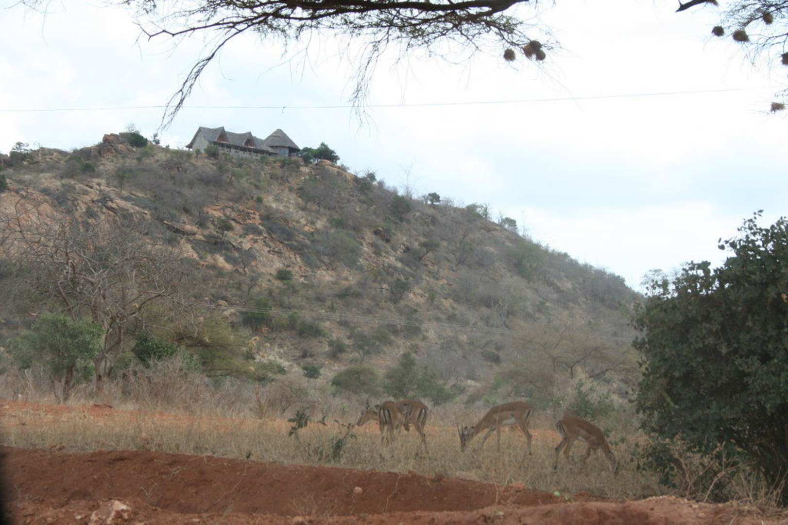 Blick auf unsere Lodge mit Antilopen