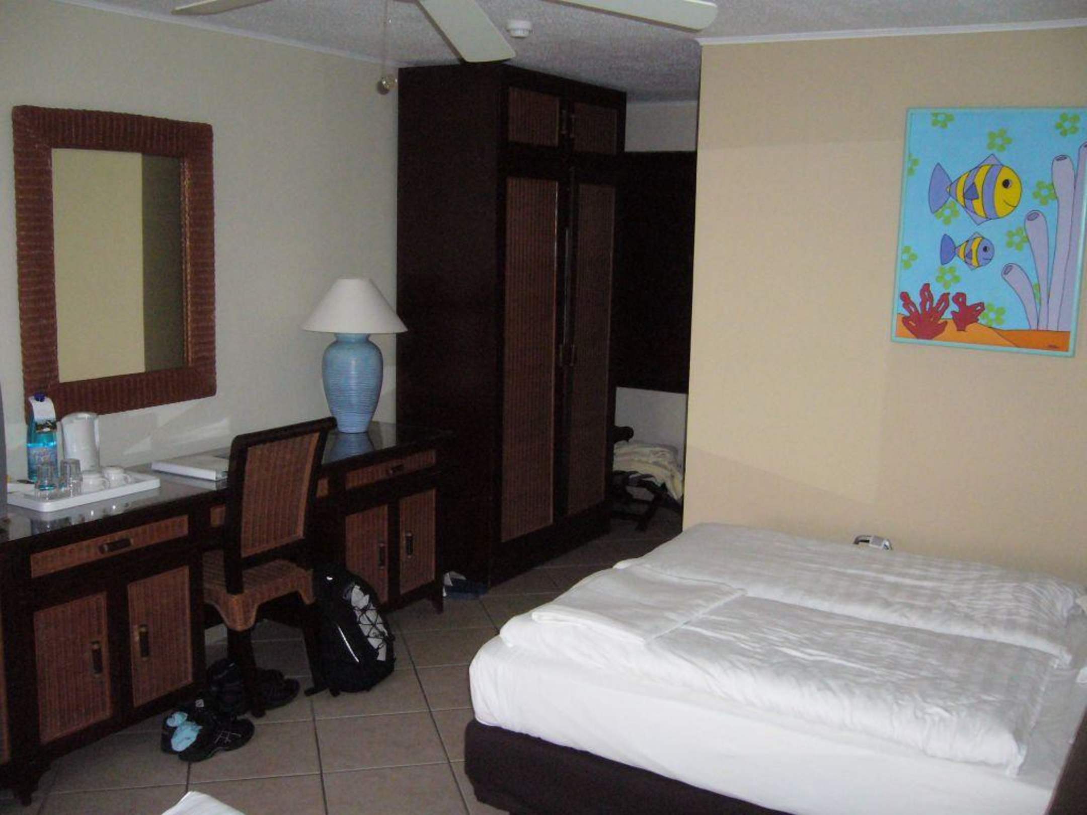 Schränke,Schreibtisch, kleiner Kühlschrank, Wasserkocher... es reichte uns.