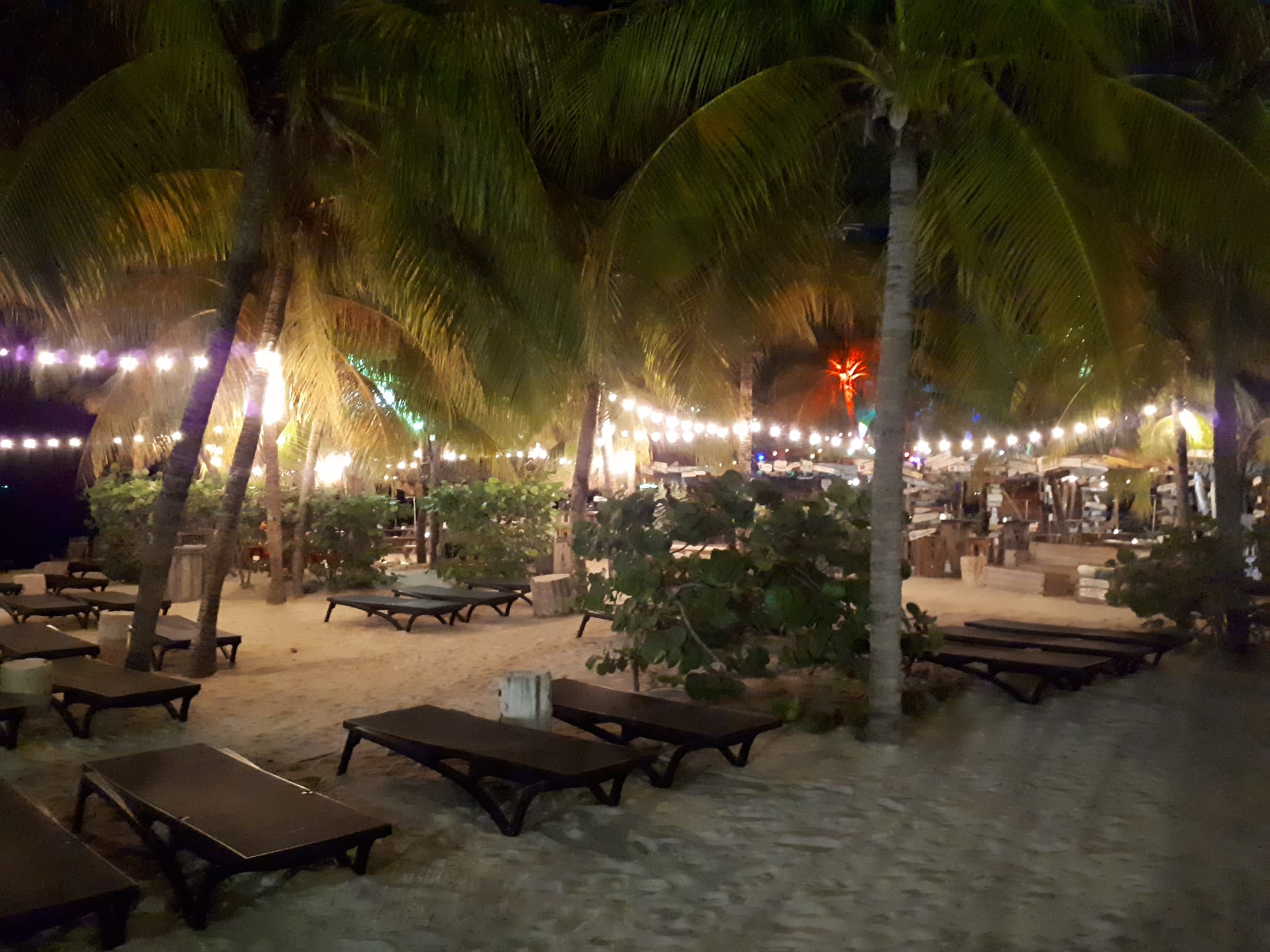 Strandliegen abends vor der Strandbar