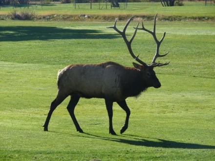 In der Brunftzeit der Elks (Herbst) kann es mitunter vorkommen, dass die Elks bis in die Städte und bis vors Motel kommen. So hier geschehen - vor der Zimmertür ein Elk ...